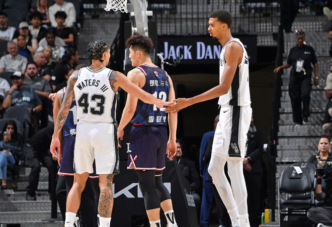 由于只是季前赛,下半场马刺直接换上替补阵容,文班亚马不再出战,这意味着文班提前打卡下班。