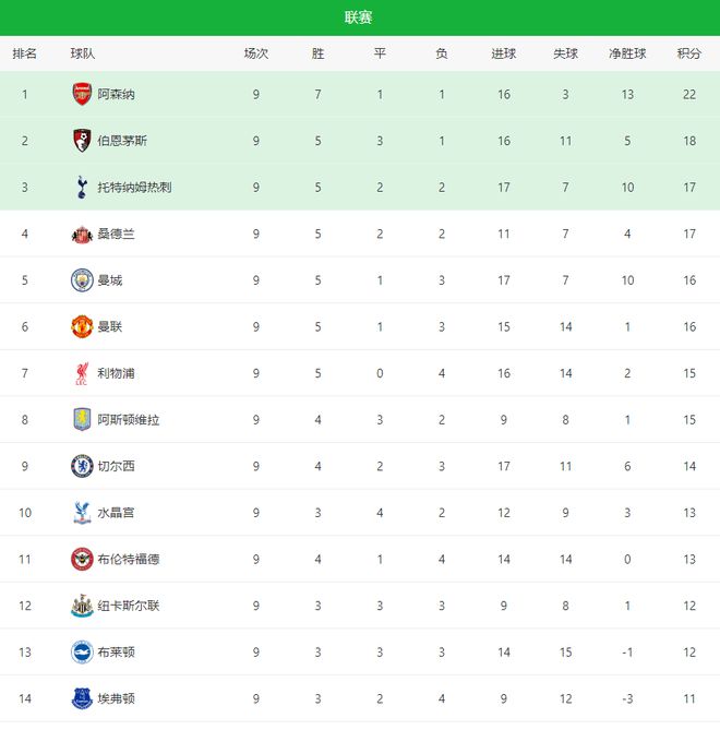 英超第9轮结束了所有比赛,最新积分榜如下!