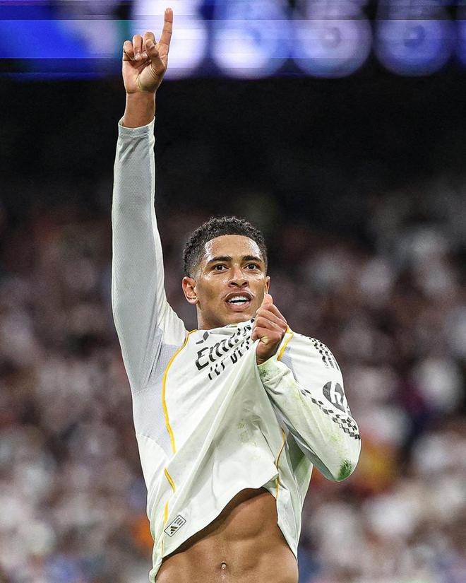 就在巴萨士气正盛时,第43分钟,维尼修斯下底传中,米利唐头球摆渡,贝林厄姆门前补射再度得手!2-1!1.8亿欧元的英格兰中场成为伯纳乌的英雄。